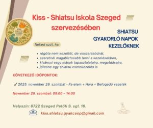 Szeretném minél több emberrel megismertetni a shiatsut, ezt a gyógyító érintést, akinek nyitott a szíve és a lelke a befogadására. Tapasztalataimat szívesen megosztom a kezelések során, tanfolyami keretek között tanítom, továbbadom ezt a nagyszerű lehetőséget.